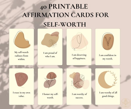 40 Boho Affirmation Card Deck for Self-Worth - printable